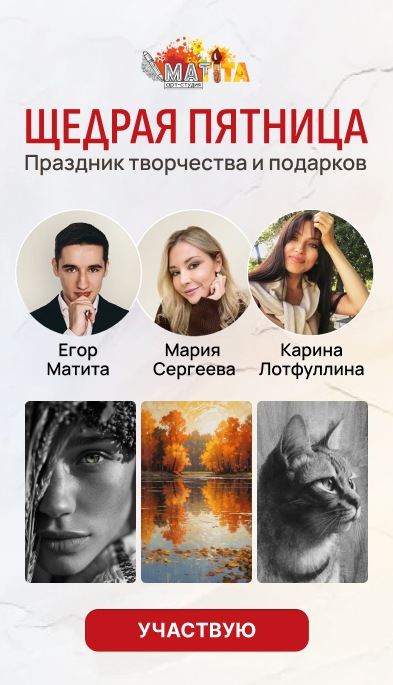 Рисование со школой Матита - это моя самореализация! Уроки прекрасные, вдохновляющие! Кураторы, если есть неточности в работах очень деликатно их корректируют. Во время учебы изменилось мое отношение к себе, стала более уверенной, спокойной. Я счастлива!!